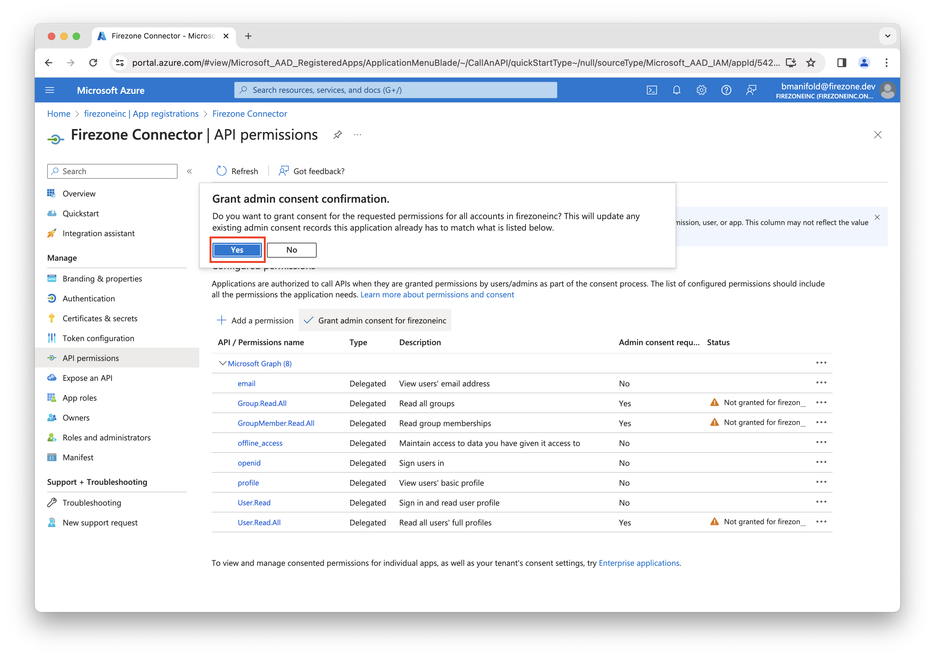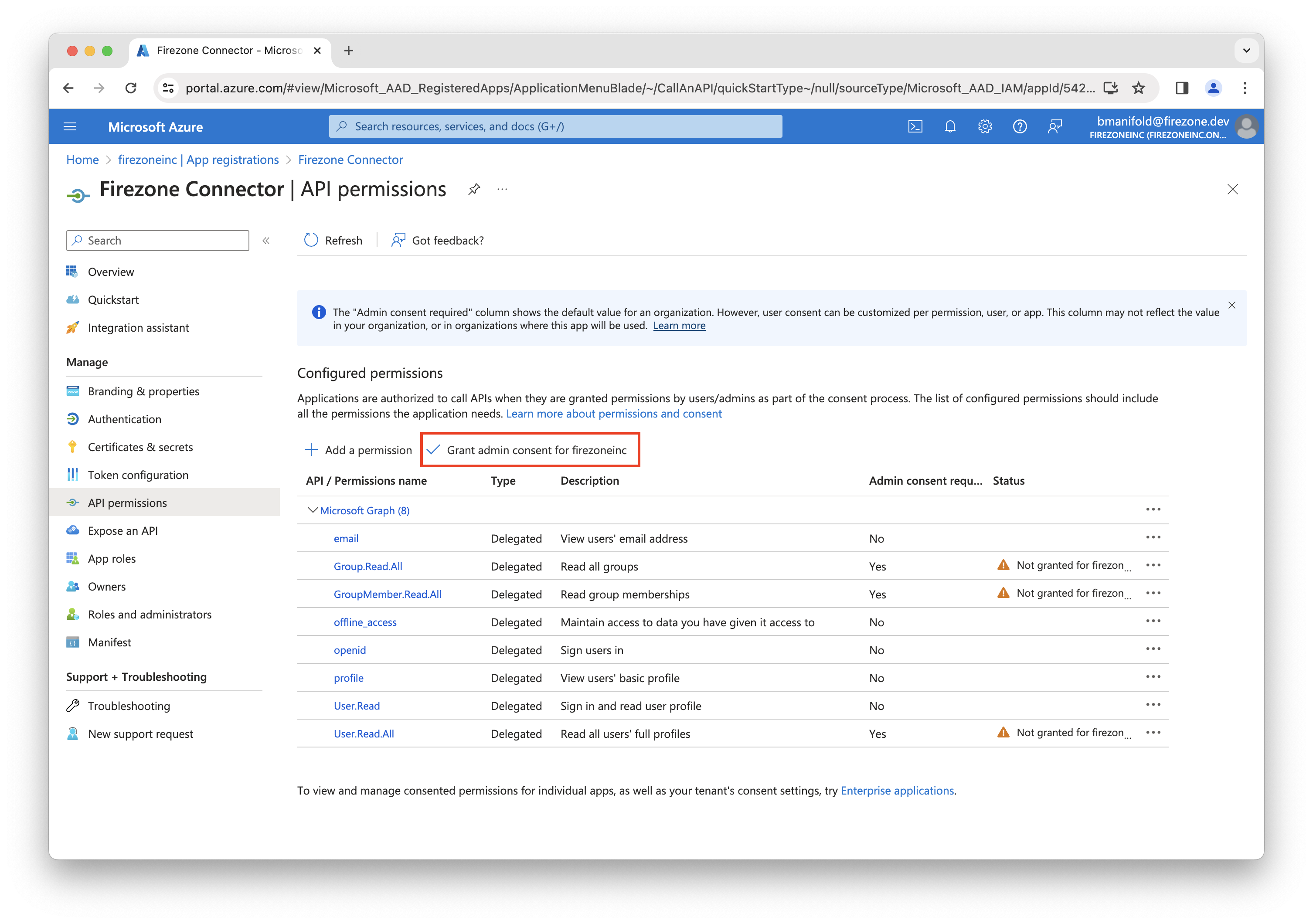 Next, you'll need to add permissions to the app registration to allow Firezone to read user and group data from your Entra ID account.