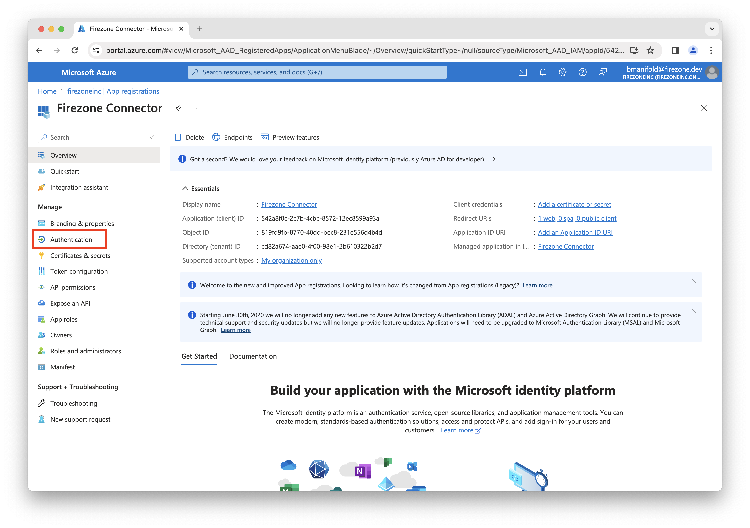 Back on the Firezone Connector app registration page, click Certificates & secrets in the left sidebar.